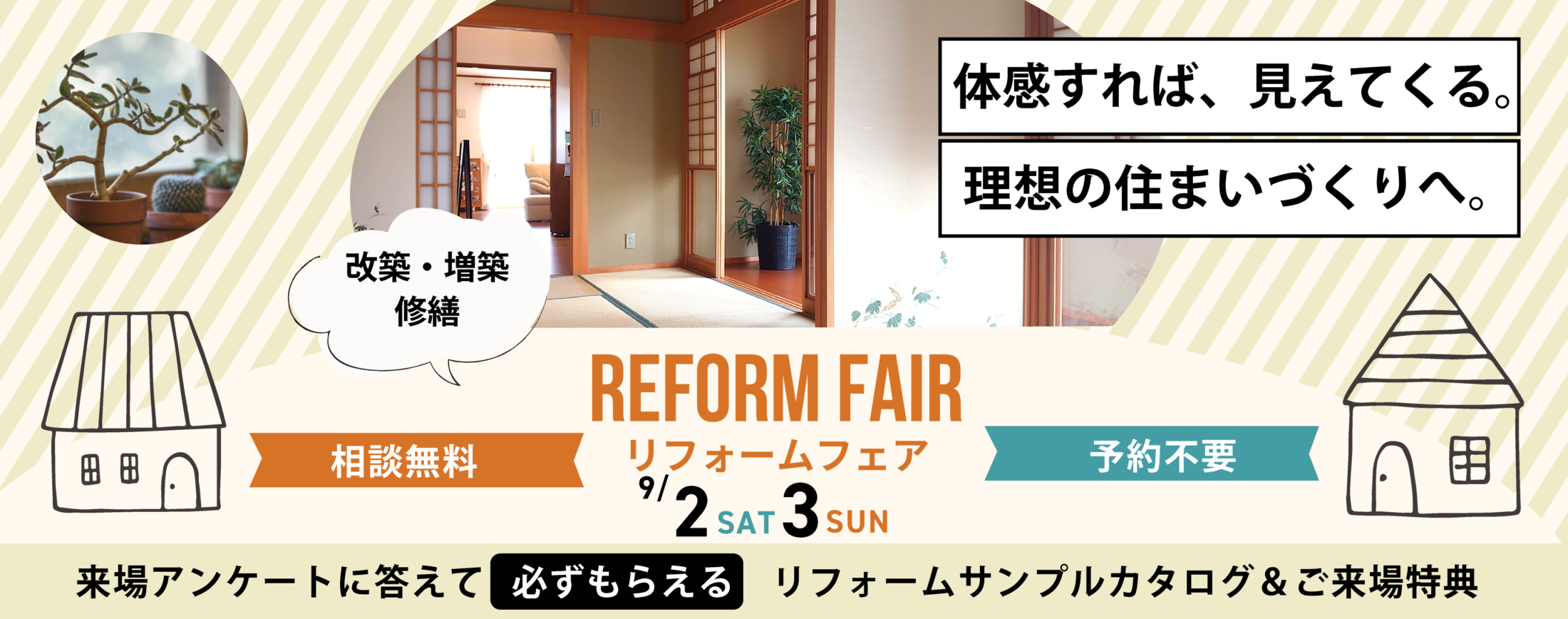 2023リフォームフェア開催決定 【来場特典】必ずもらえる!アンケート参加でリフォームカタログ&来場記念品 【予約不要】直接催し物会場へお越しください 【完全無料相談会】リフォームをご検討中の方、お気 ...
